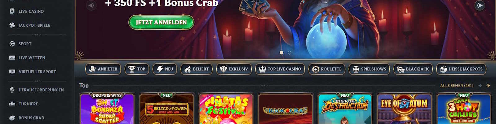 250% Bonus bis 3000 €+ 350 FS + Bonus Crab
